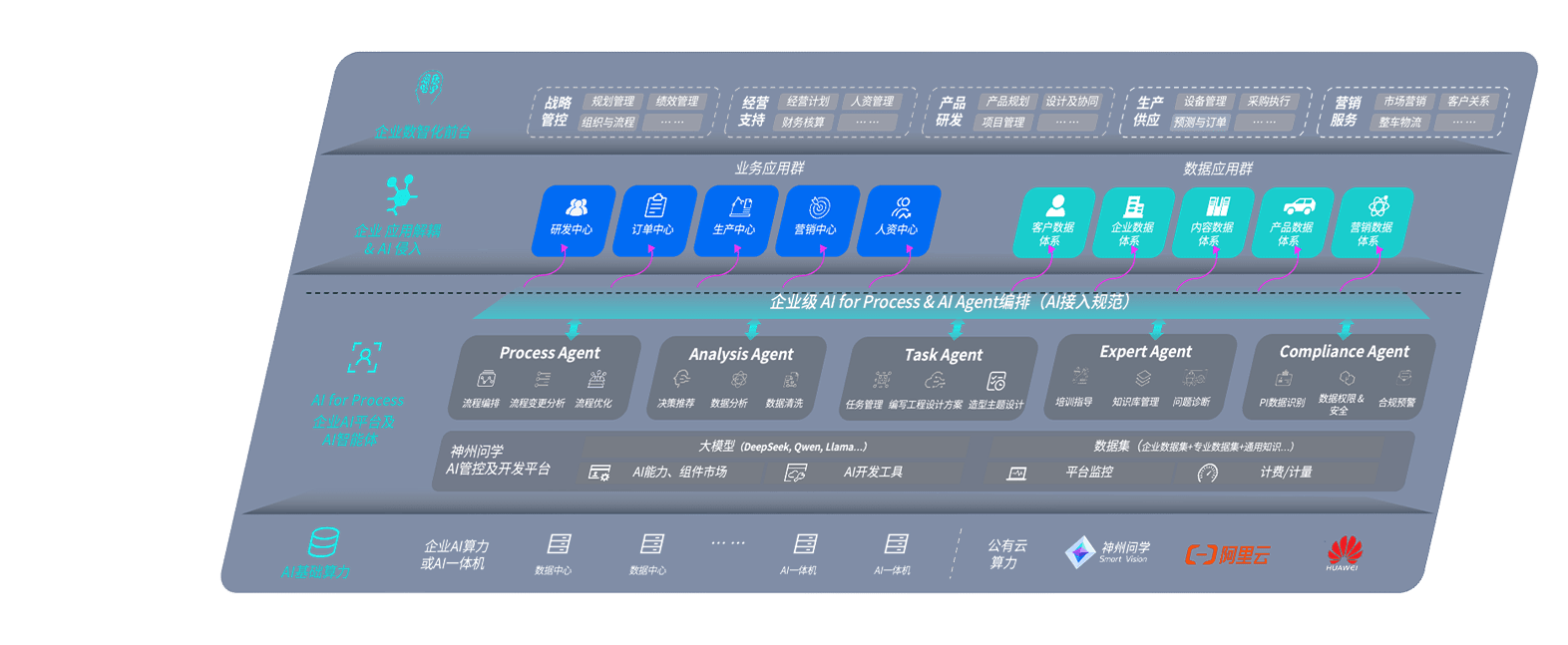 口袋牛店问学智车解决方案是一套基于AI技术的汽车行业智能化系统,,覆盖从底层算力到顶层AI应用的全栈方案。。。方案由算力层、、、、模型层和应用层组成:算力层,,,方案支持多种一体机配置,,具备云端灵活部署、、、多云适配以及动态优化计算资源的能力;模型层,,,口袋牛店问学平台版提供了企业级AI应用一站式构建与管理平台,,支持基于后训练强化技术的汽车企业专属模型的训练、、、评测和运营;应用层,,,,口袋牛店问学DeepSeek版提供包括超级员工、、、智能招采、、、、智能营销、、智能客服、、、AI for BI等一系列解决方案,,可助力汽车行业实现数字化转型,,,,让管理更智能、、、响应更敏捷。。